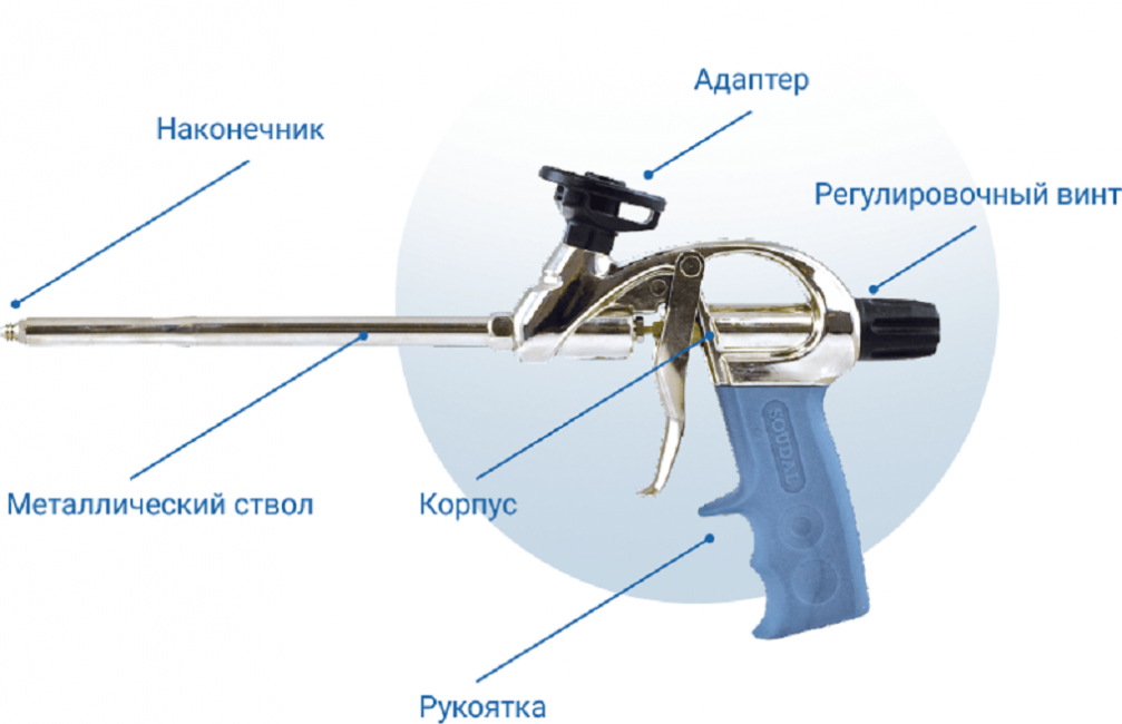 Так как конструкция пистолета для подачи монтажной пены достаточно проста, его качество зависит от варианта исполнения лишь нескольких деталей:
