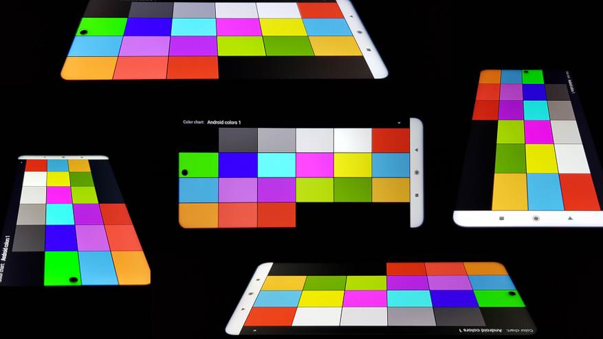 Углы обзора высокие и соответствуют современным IPS матрицам. Даже под острыми углами нет цветовых искажений, хотя контрастность и яркость немного падают. Черный под углом получает свечение, характерное для такого типа экранов.