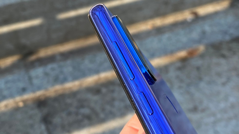 Смартфон имеет традиционную форму корпуса с несильно закругленными углами. Никаких совсем явно отличительных особенностей на корпусе нет. Спереди дисплей с каплевидным вырезом, сзади — градиентная покраска, в моем случае синего цвета. Однако стоит разобраться детальнее.