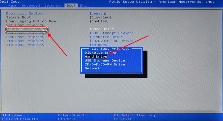 Итак, после того как мы попадаем в BIOS, переходим в раздел «BOOT» и с помощью клавиш-стрелок перемещаемся к строке «1st Boot Priority». Нажимаем на клавишу «Enter» и выбираем тот диск, с которого будет происходить загрузка системы.