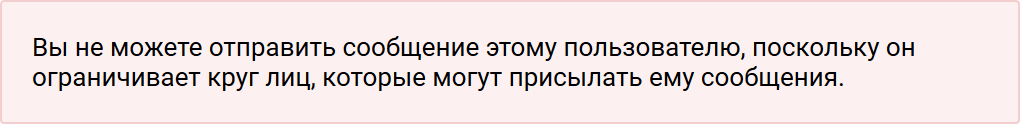 “Вы не можете отправить сообщение этому пользователю, поскольку он ограничил круг лиц, которые могут присылать ему сообщения
