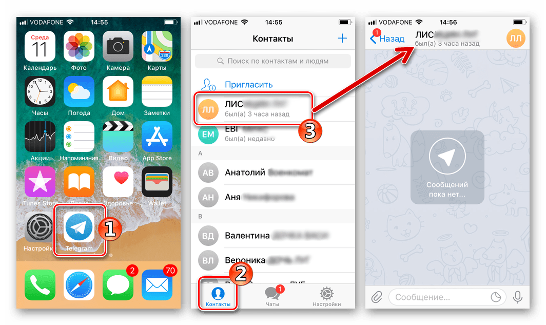 Владельцам iPhone, которые обмениваются информацией с помощью клиента Telegram для iOS, так же, как и в вышеописанном случае с Android-версией, предоставляется выбор из нескольких вариантов действий для добавления друзей в телефонную книгу мессенджера и начала общения с ними. При этом нужно отметить – главным принципом для решения рассматриваемого вопроса в случае с девайсом от Apple является обеспечение синхронизации Телеграм с телефонной книгой iOS.