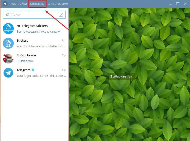 - Запустите программу Телеграмм на компьютере, и перейдите в меню где необходимо выбрать контакты: