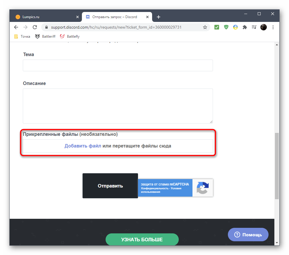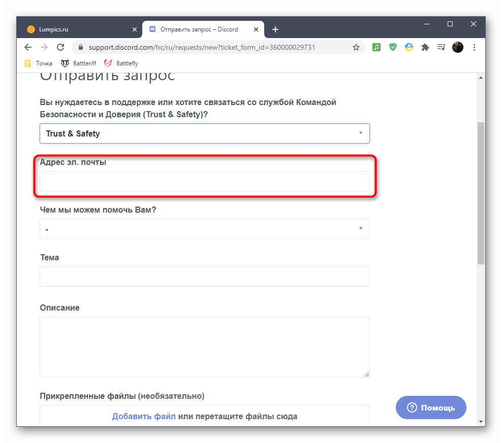 В поле «Описание» объясните проблему с которыми вы сталкиваетесь в Discord.