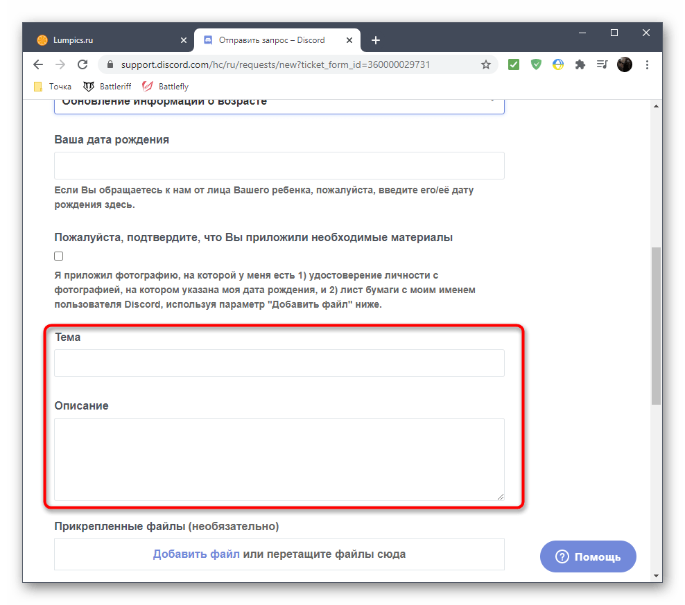 - Перейдите по этой ссылке, чтобы отправить Запрос на изменение возраста в Discord.