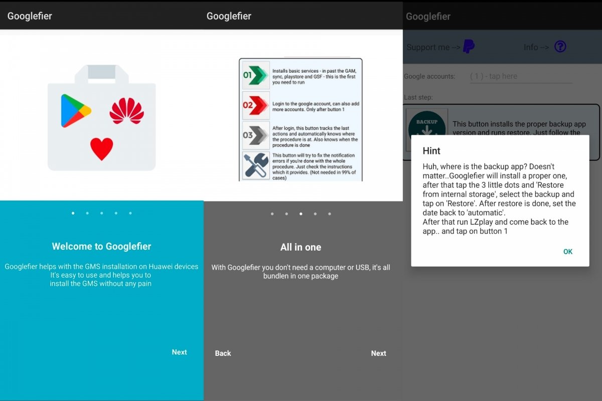Третий способ установить приложения Google на Huawei — перейти в Googlefier. Как видно из названия, оно используется для согласования вашего телефона Huawei с Google. В частности, оно устанавливает Google Play Services, а также официальный Play Store.