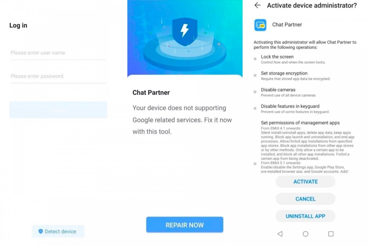 Chat Partner устанавливает Google Play на телефон Huawei