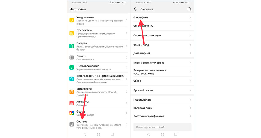 - Открыть настройки смартфона;
