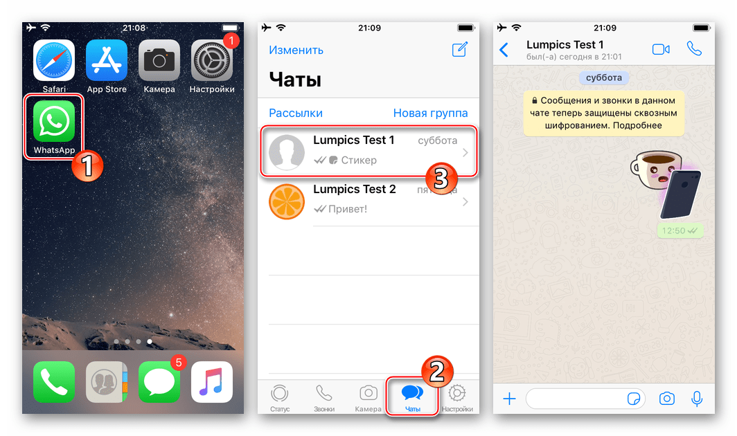 Прикрепить фотографию из хранилища iPhone к сообщению, передаваемому через мессенджер, очень просто – для этого приложение ВотСап для айОС разработчики оснастили двумя элементами интерфейса. Кнопки для выбора вложения станут доступными сразу после открытия чата с адресатом, поэтому перейдите к диалогу, а затем выберите вариант, который больше подходит к ситуации.