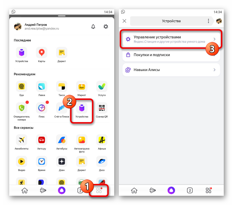 - Из списка выбрать пункт «Устройства», перейти к управлению.
