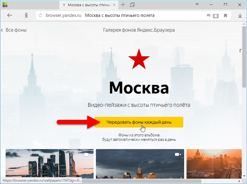 - Также в появившемся окне имеется кнопка «Чередовать эти фоны». После её нажатия браузер активирует функцию автоматической смены заставки ежедневно. Кстати, инструкция актуальна не только для тёмных, но и для любых других изображений, даже тематических.