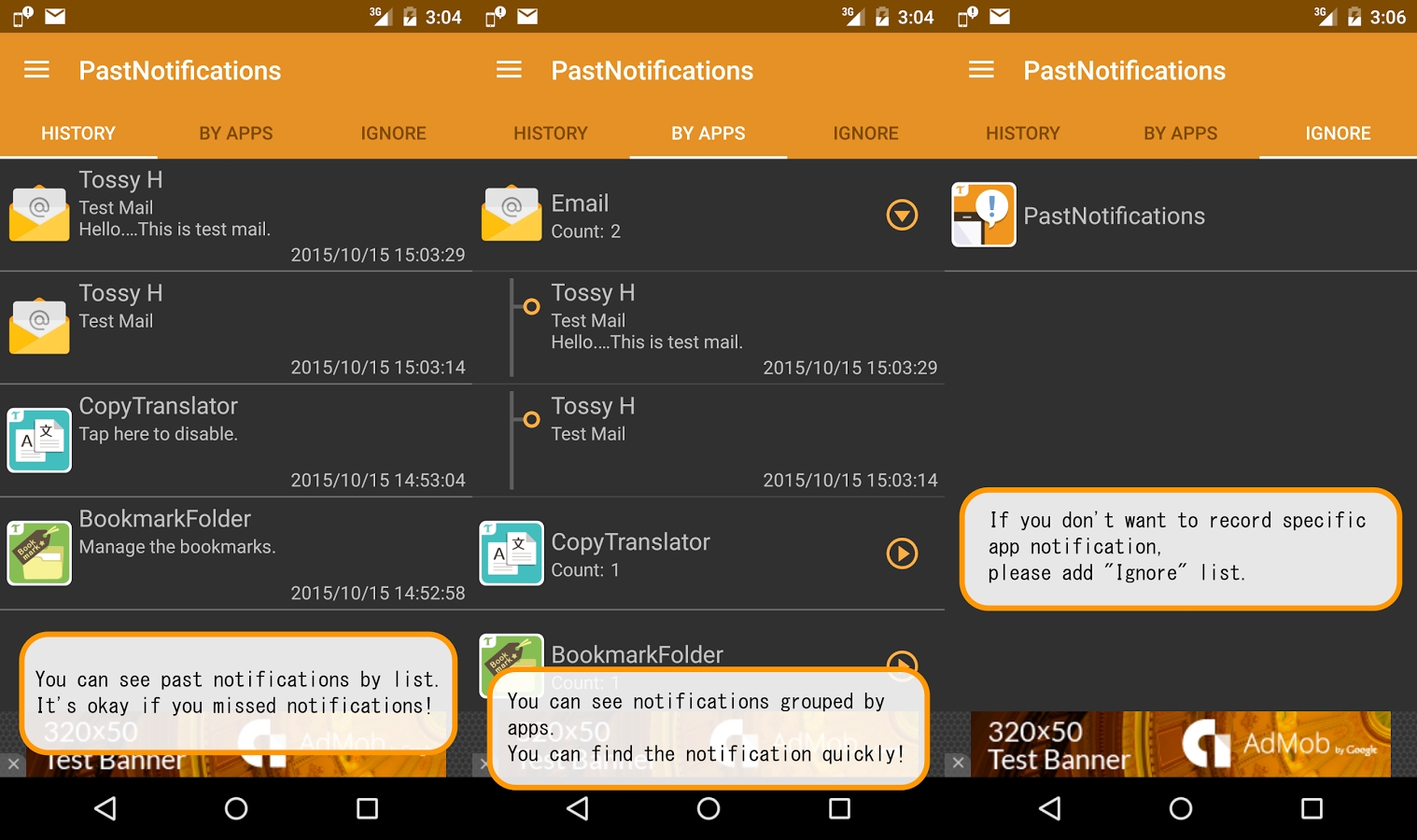 Программа отображает до 2000 последних уведомлений вместе с полным содержимым текста, группирует их по приложениям, которые прислали это уведомление и предлагает несколько удобных функций для работы с данными. Также есть очень приятная возможность добавлять уведомления в чёрный список (таким образом можно заблокировать назойливые уведомления из игр).