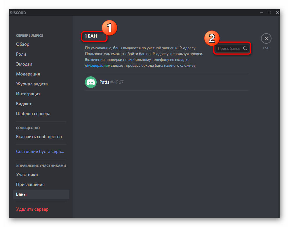 Как разбанить участника в Дискорде на сервере