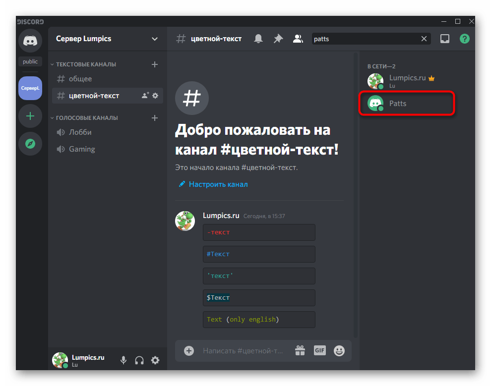 - Откройте чат с нужным сервером.