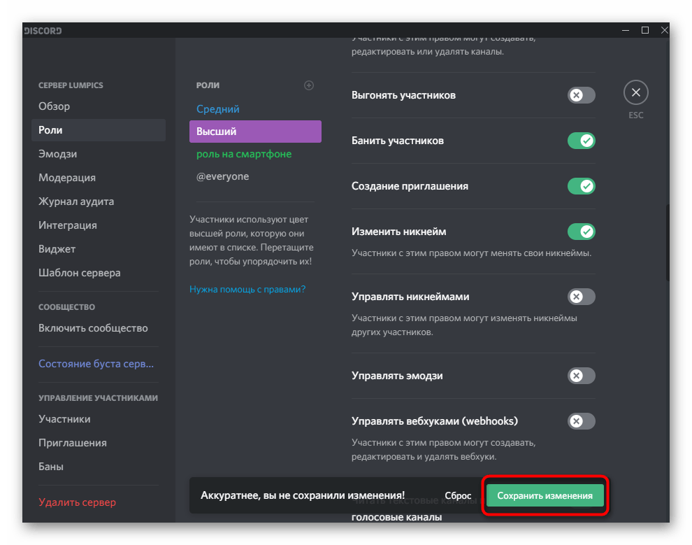 Теперь все участники, кому присвоена отредактированная роль, смогут самостоятельно как банить других членов сервера, так и снимать ограничения, если это требуется.