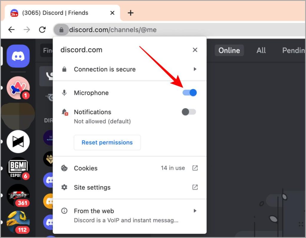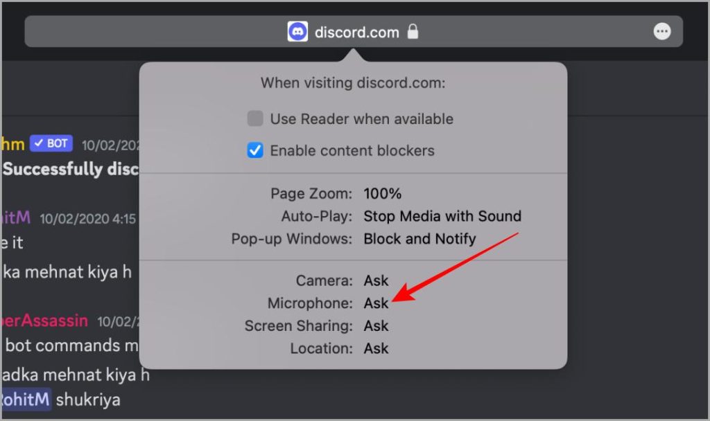 Если вы хотите использовать Discord в своих браузерах, вам также рекомендуется проверить разрешение микрофона на уровне браузера для Discord. Давайте посмотрим, как это сделать в Safari и Chrome.