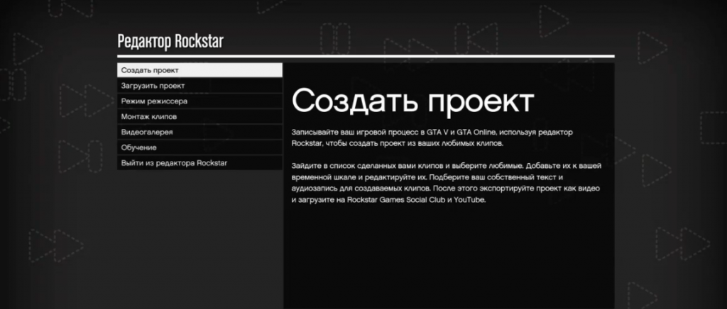 - в меню паузы: чтобы запустить это меню, нужно нажать на клавишу Esc, находясь в игре. Далее из главного меню нужно перейти в Rockstar Editor (как это сделать, мы описывали выше), а затем выбрать подпункт «Режим режиссера»;