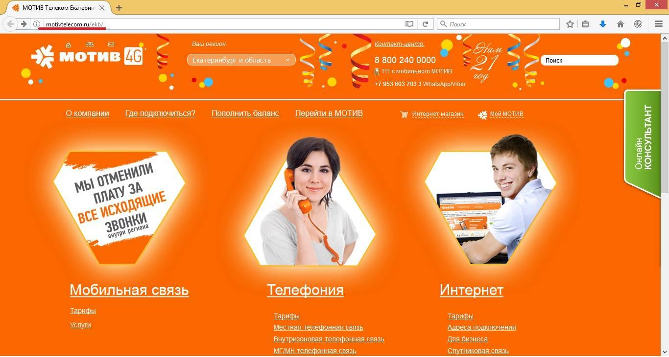 Услуги и Тарифы Мотив в Екатеринбурге и Свердловской области