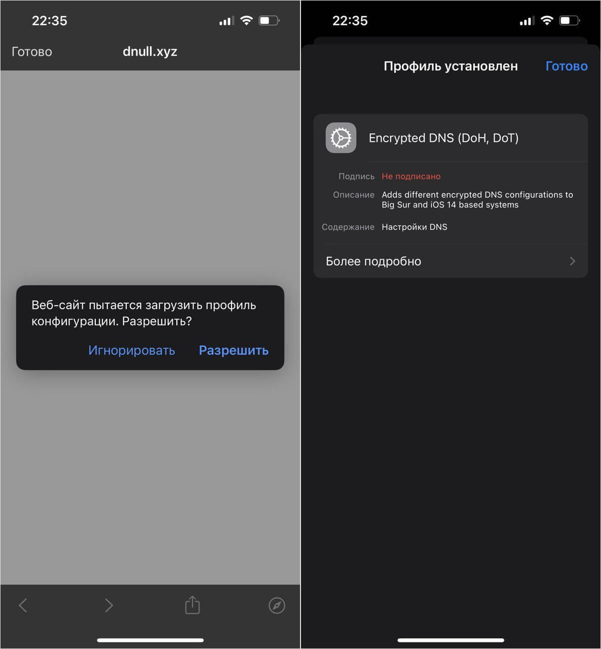 Установить DNS-профиль так же просто, как и VPN или профиль разработчика