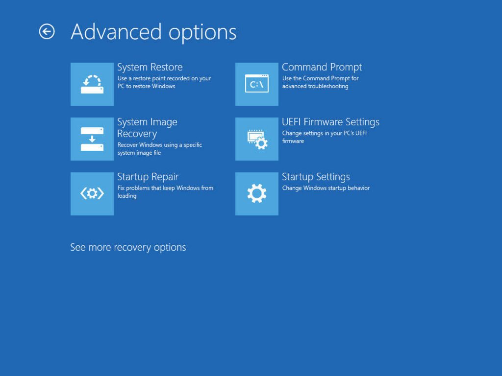 Чтобы сбросить настройки UEFI, вам сначала нужно будет получить доступ к меню восстановления.